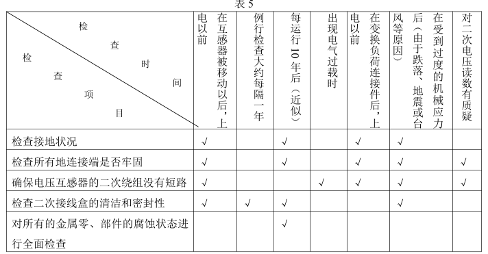 為了更好地使產品運行,我們建議按表 5 的項目及時間檢查,在檢查互感器時按表 6 清單檢