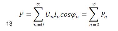 對(duì)于周期非正弦交流電,將周期交變電壓電流進(jìn)行傅里葉變換,展開為傅里葉級(jí)數(shù),有功功率計(jì)算公式還可表示為: